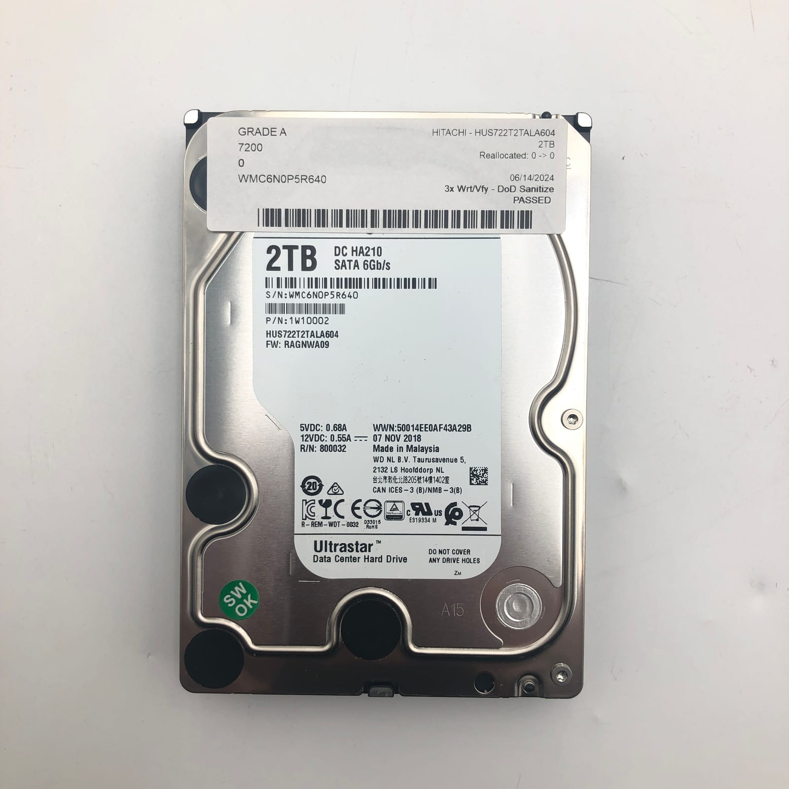 - Data sanitization: 3x Wrt/Vfy – DoD Sanitize — verified PASSED.