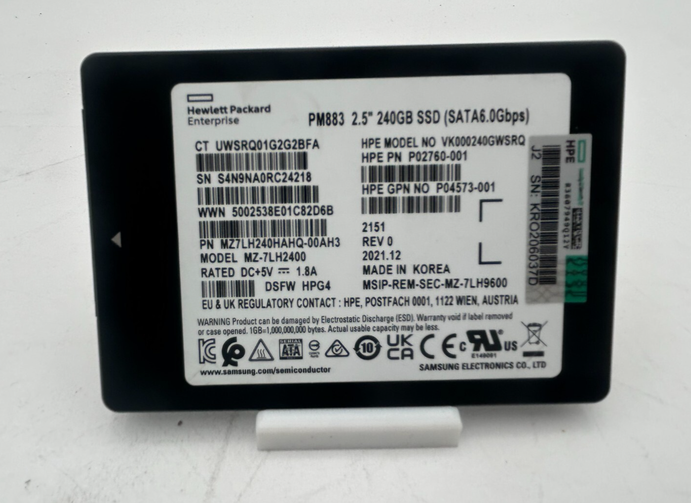 HP 240GB SSD 6G RI SFF PM883 P02760-001 VK000240GWSRQ – Tested Bare Drive