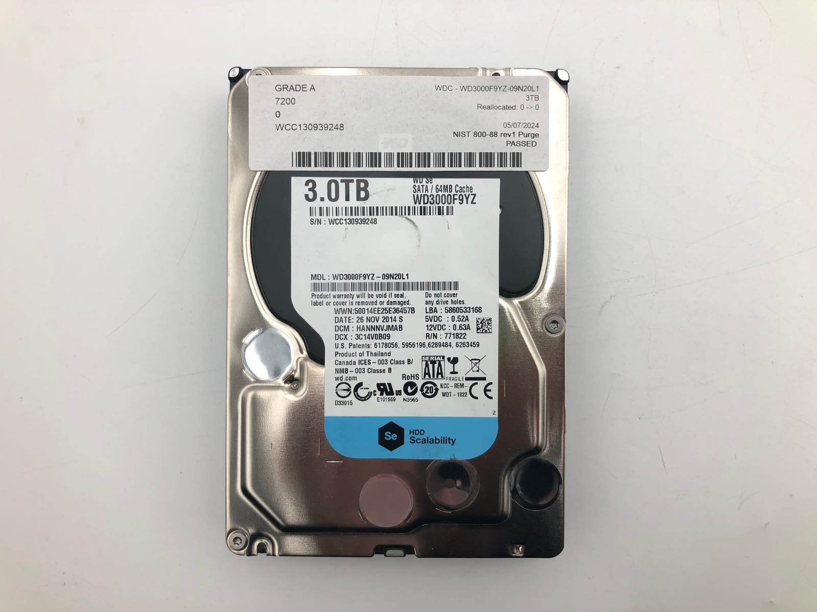 This listing covers 1 individually tested, 3TB WD3000F9YZ-09N20L1 drive. Every unit meets all of the following floor-guarantee criteria before shipping: