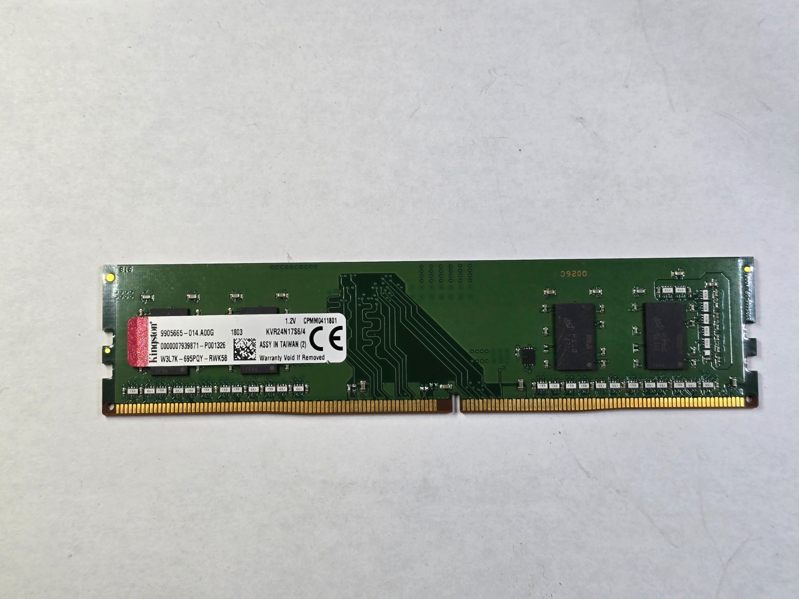 Kingston KVR24N17S6/4 4GB DDR4‑2400MHz UDIMM PC4‑19200 Desktop RAM Module