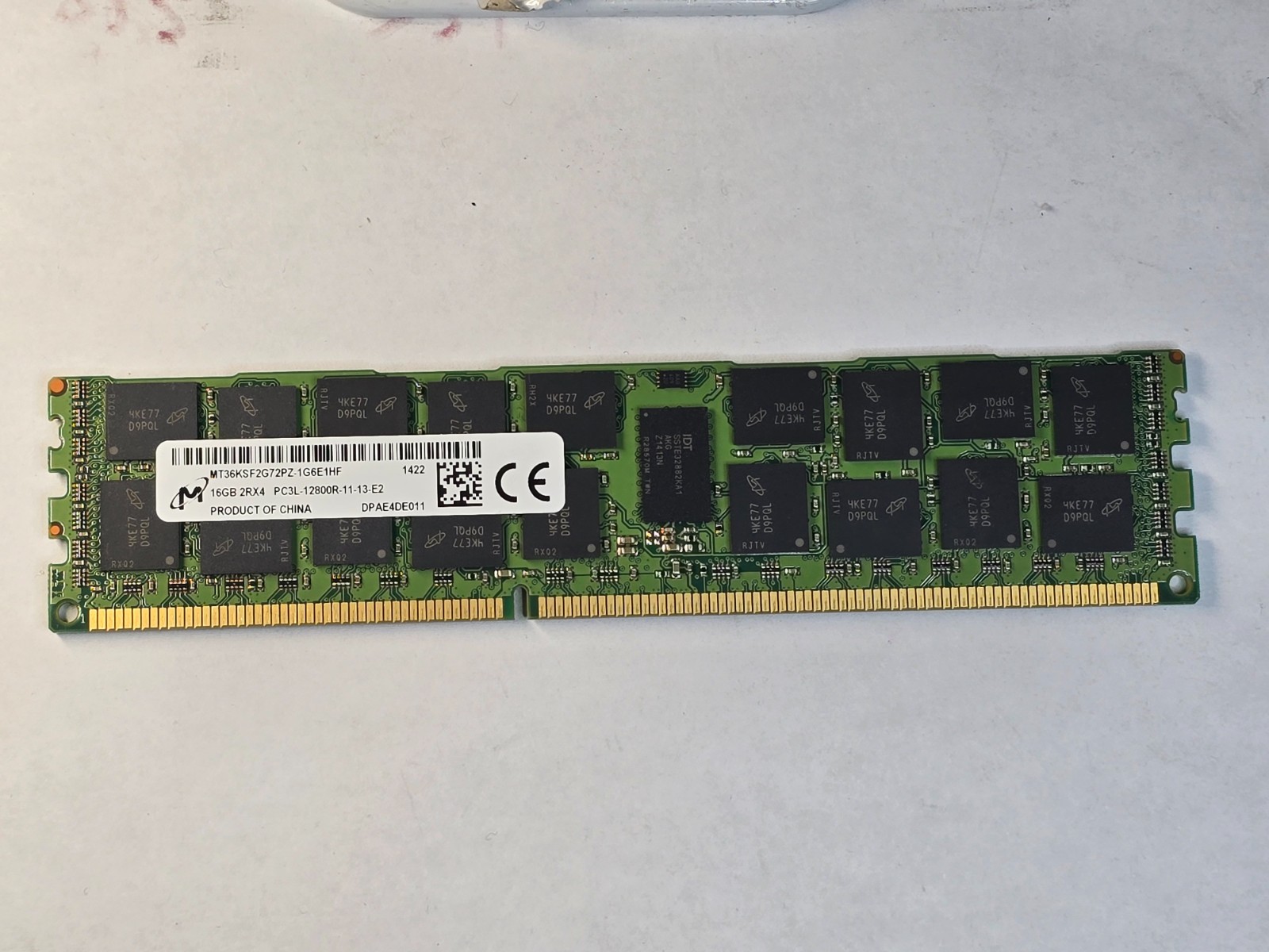 Micron 16GB DDR3L‑1600 PC3L‑12800R ECC Registered RDIMM Server Memory MT36KSF2G72PZ‑1G6E1