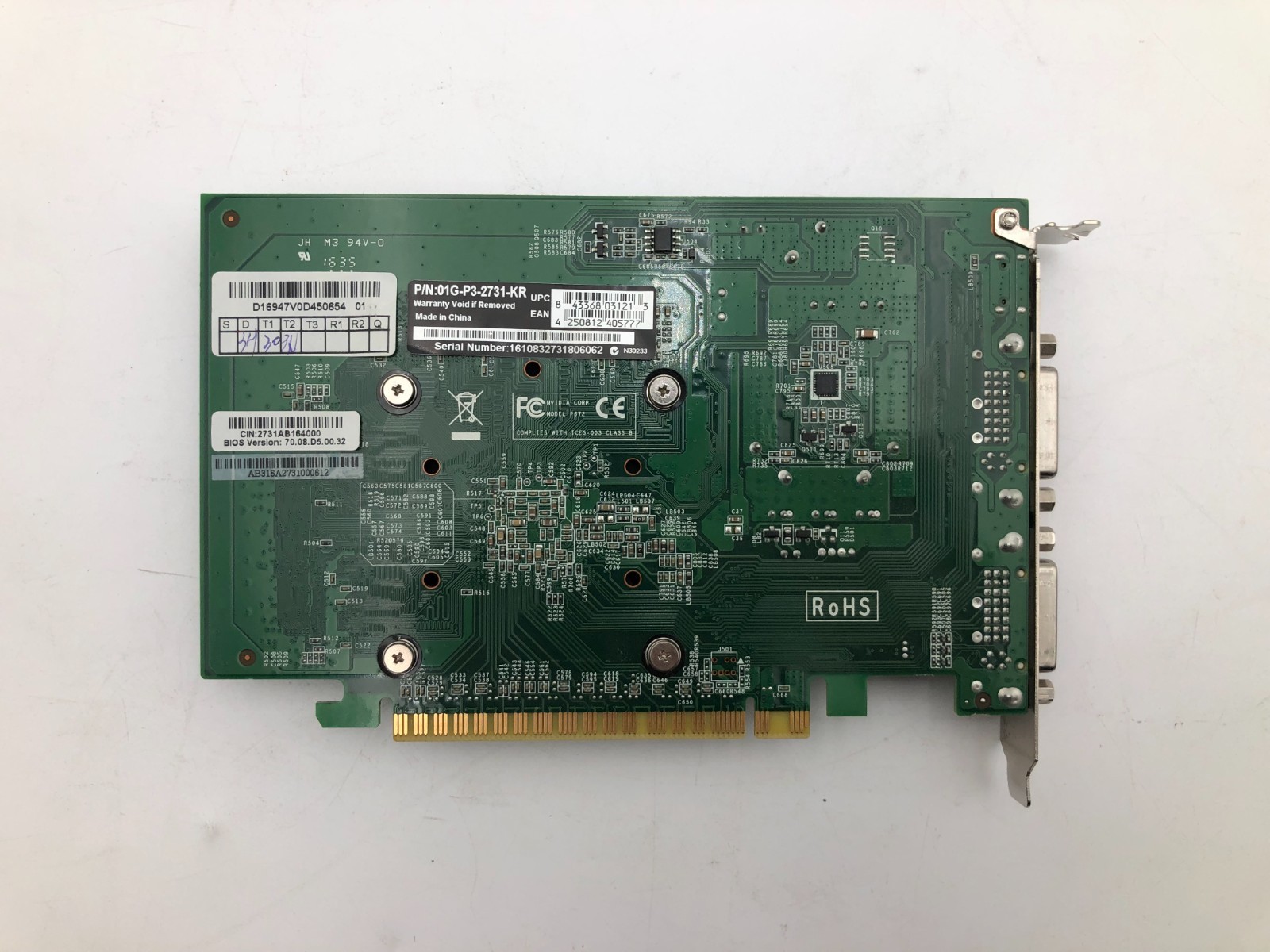 Based on the identifiers present on the card, this unit matches EVGA part number 01G-P3-2731-KR. It features 1GB of DDR3 memory, a PCI Express 2.0 x16 interface, dual DVI outputs, and a Mini HDMI output. This unit has been tested with software and verified for display output.