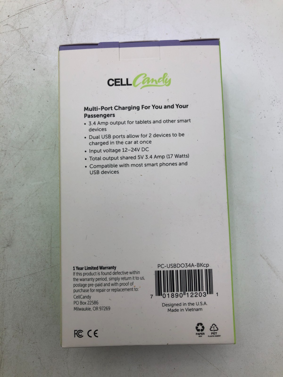 Lot (19) – Cell Candy Fast Charge Dual Port USB Car Charger PC‑USBDO34A‑BKCP – NEW