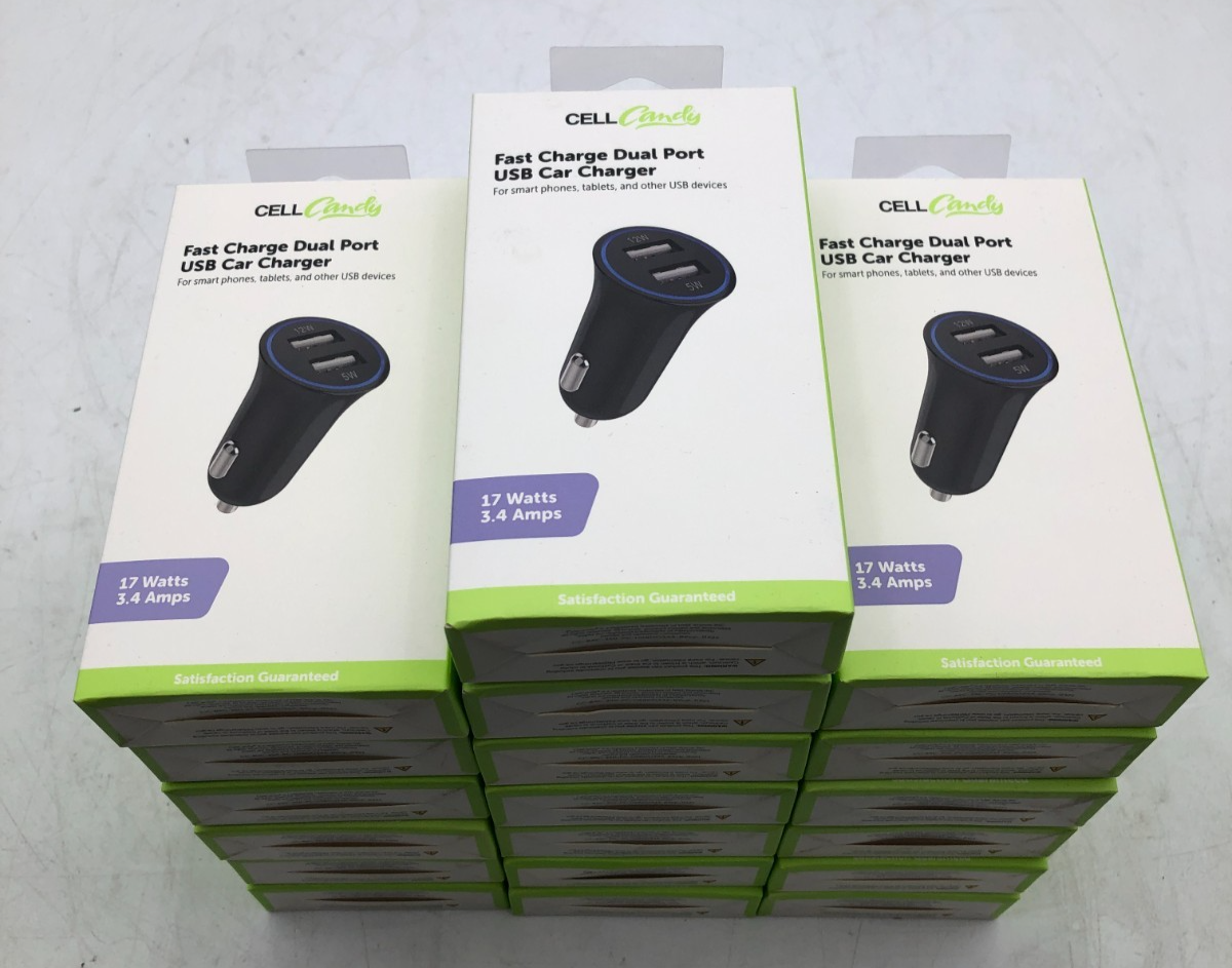 - Includes: 19 x Brand new Cell Candy Dual Port USB Car Chargers