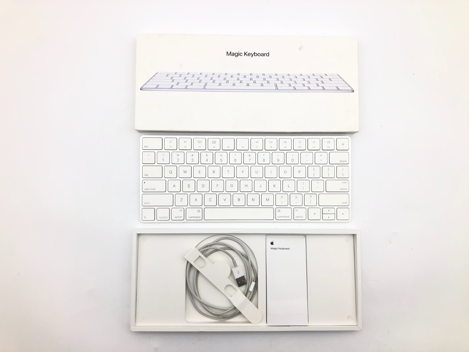 Apple Magic Keyboard, Lightning charging cable, original box, documentation -