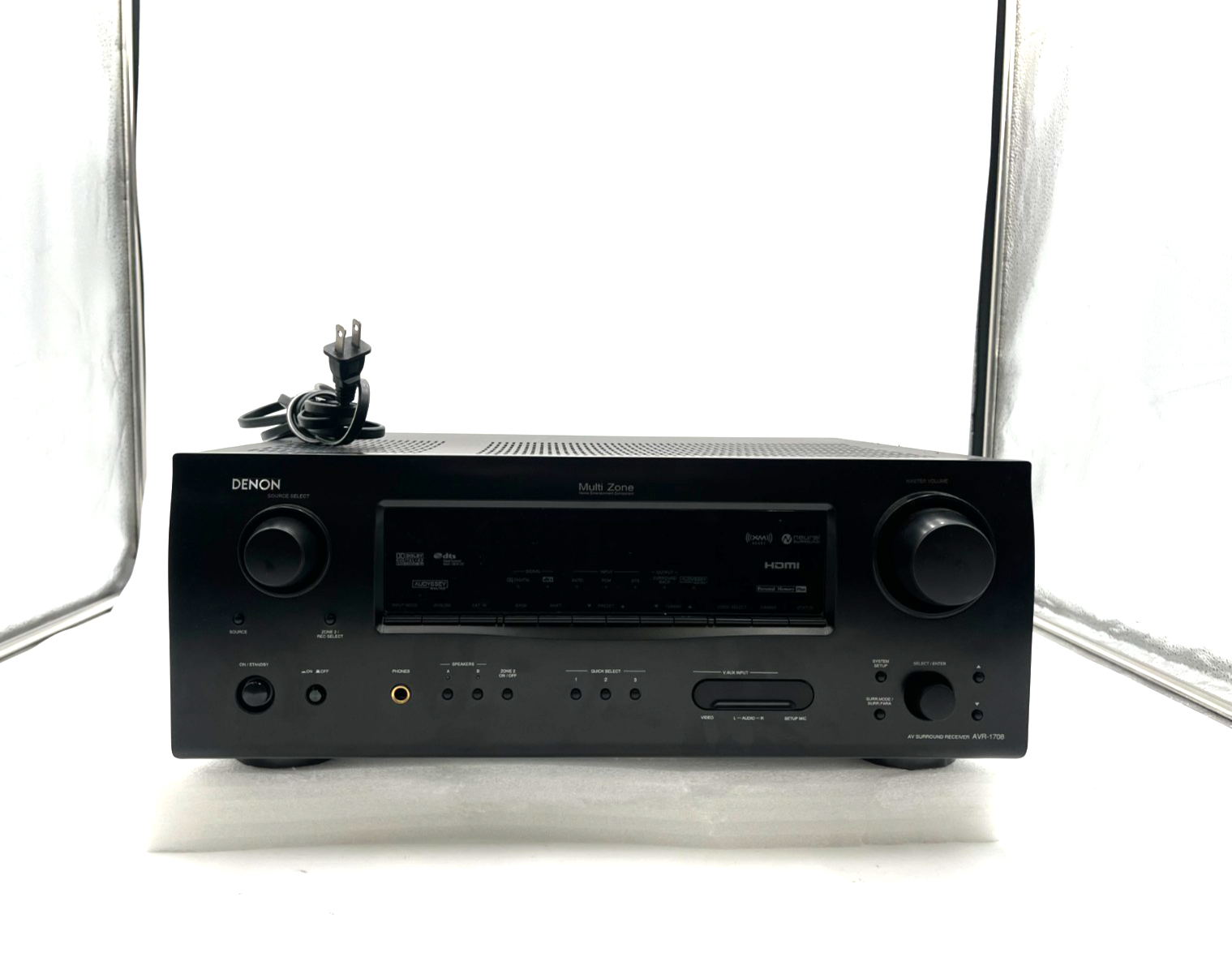 This listing features the Denon AVR-1708, a full-featured 7.1-channel AV receiver designed for home theater enthusiasts seeking immersive audio without network complexity. Supporting Dolby Digital EX, DTS-ES, and Dolby Pro Logic IIx, the AVR-1708 delivers high-quality surround sound with ample analog and digital inputs. With 75W per channel and support for HDMI switching (video pass-through), this unit is a solid foundation for a surround sound system. It has been tested and all key functions are working. The original remote control is not included, but all primary functions are accessible via the front panel.