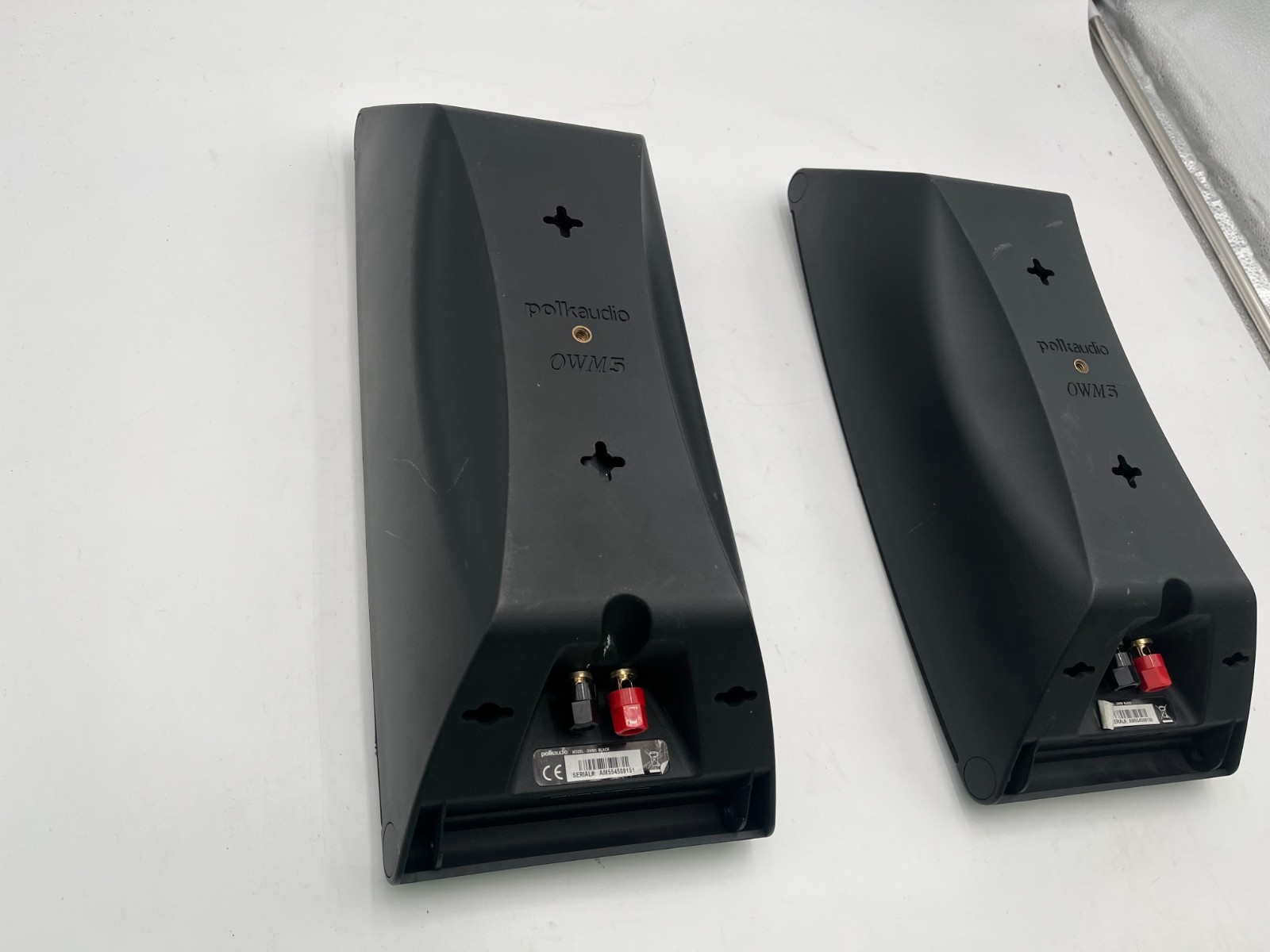 Offered here is a tested pair of Polk Audio OWM5 multi-application wall-mountable speakers. Known for their unique curved design and multiple mounting options, the OWM5s are part of Polk’s high-performance speaker lineup. They’re engineered for versatility, ideal for use in front or surround roles in home theater setups or as stand-alone stereo speakers. The speakers feature Capacitive Coupling Technology and Dynamic Balance drivers to deliver clean midrange and punchy lows in a compact form. These are tested and working with minor cosmetic wear consistent with light use. Great for expanding or upgrading your home audio system.