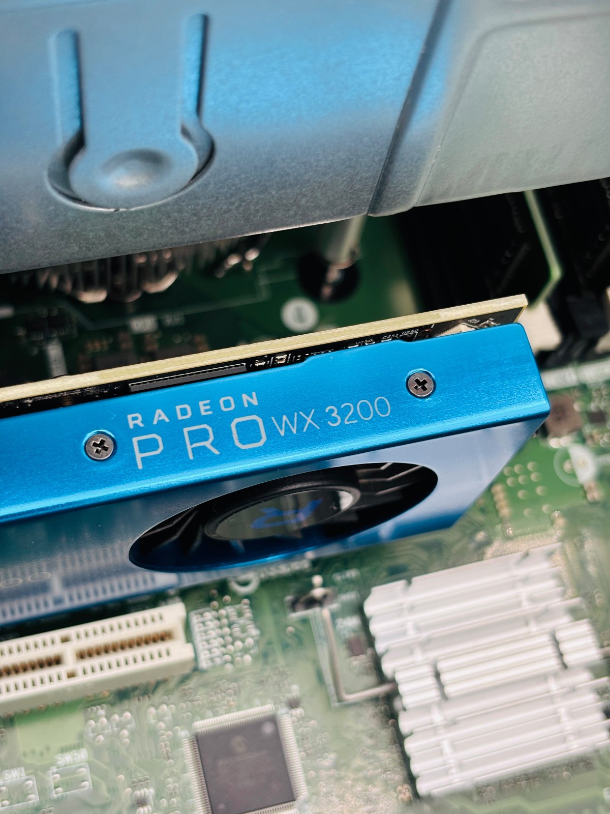 - Video / GPU: AMD Radeon Pro WX 3200 4GB GDDR5 – Professional workstation GPU supporting 4x Mini DisplayPort, DirectX 12, OpenGL 4.5