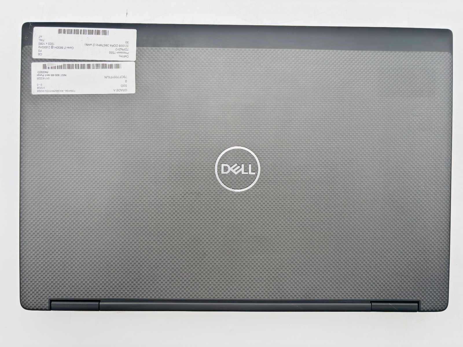 - Storage Device: 512GB M.2 NVMe SSD. The storage device has been tested and securely wiped using the NIST 800-88 Rev. 1 and NAID standards.
