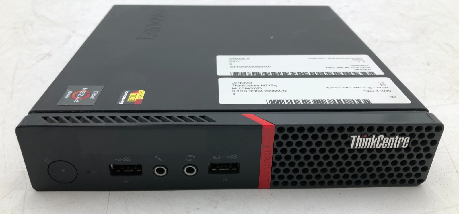 The Lenovo ThinkCentre M715q is a compact, enterprise-ready desktop featuring AMD Ryzen 5 PRO performance in a space-saving small form factor. Ideal for business, education, or home office environments, it includes a fast 256GB NVMe SSD and 8GB of memory for everyday multitasking. Radeon Vega 8 graphics provide solid visual performance for productivity tasks. With Windows 11 Pro pre-installed and a power adapter included, this unit is ready to use out of the box.