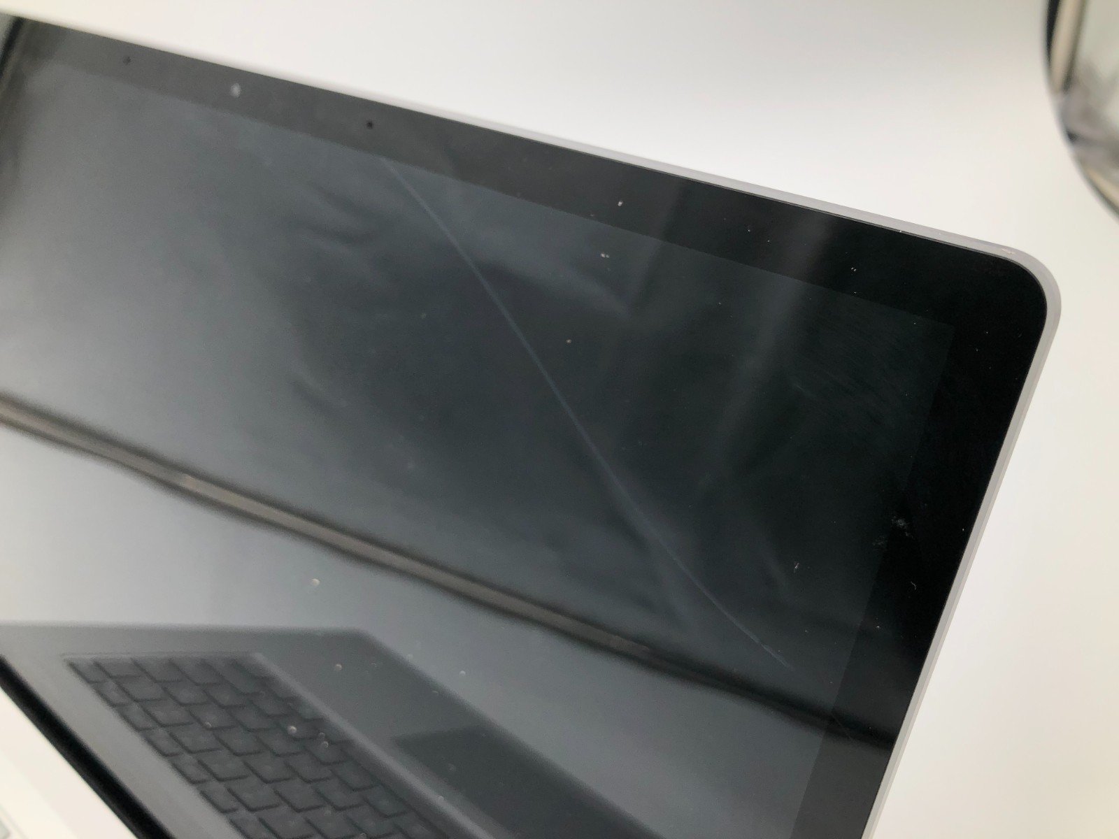 - Condition: Screen has a minor crack in the glass LCD cover; cosmetic only and does not affect functionality. Case, ports, keyboard, and touchpad are in excellent condition.