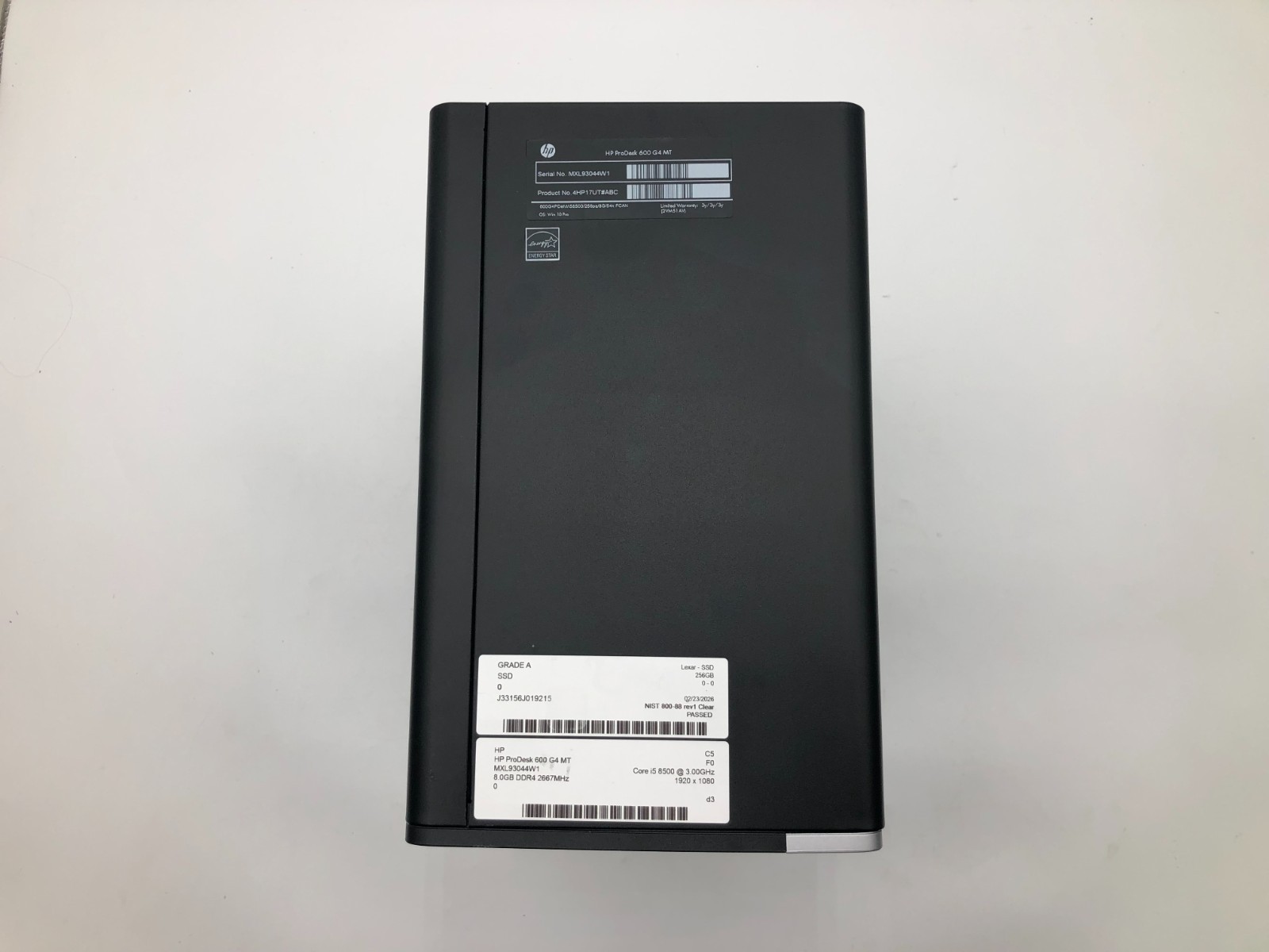 - Storage Device: 256GB 2.5″ SATA III SSD — The storage device has been tested and securely wiped using the NIST 800-88 Rev. 1 and NAID standards.