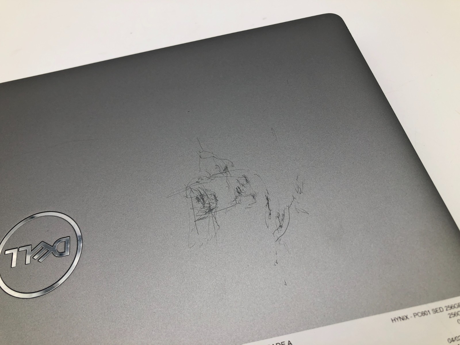 - Condition: Heavy scratches and major discoloration on casing. Screen, ports, keyboard, and touchpad in excellent condition. No missing parts.