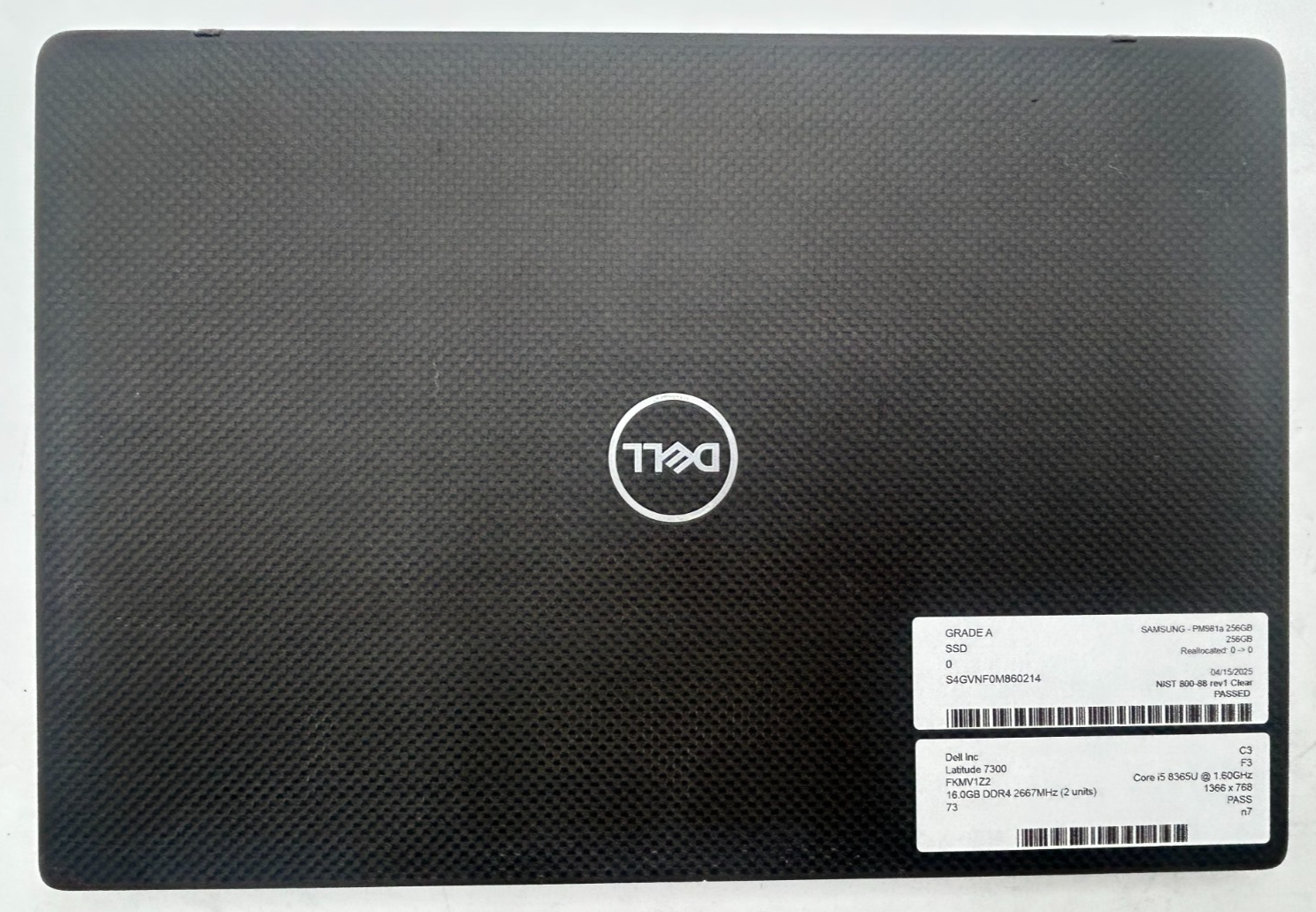 - Storage Device: 256GB NVMe SSD — The storage device has been tested and securely wiped using the NIST 800-88 Rev. 1 and NIAD standards.