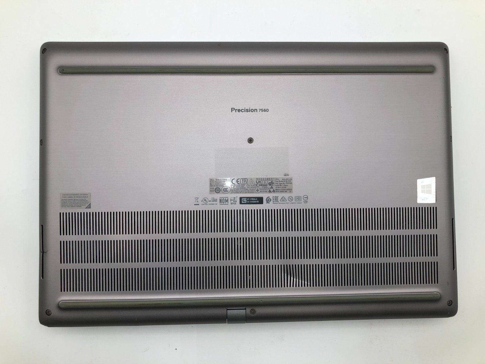 The Dell Precision 7560 is a professional-grade mobile workstation designed for engineers, designers, and power users who demand high performance and reliability. Equipped with an Intel Core i9-11950H processor, 32GB of DDR4 memory, and a lightning-fast 1TB NVMe SSD, this system delivers exceptional performance for intensive computing tasks. The 15.6-inch Full HD display provides crisp, clear visuals for detailed workflows. This unit has been tested and verified for key functionality and is in fair overall cosmetic condition with only light touchpad discoloration and a minor dent to the rear vent. This unit does not include a battery or power adapter. Please review all photos for cosmetic condition and noted details before purchase.