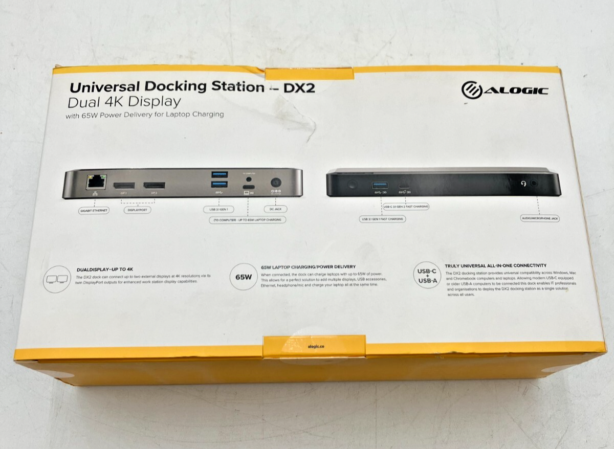Alogic DX2 Dual‑4K Universal Docking Station – Factory Sealed (Minor Tear on Back) – R2V3 C5F4