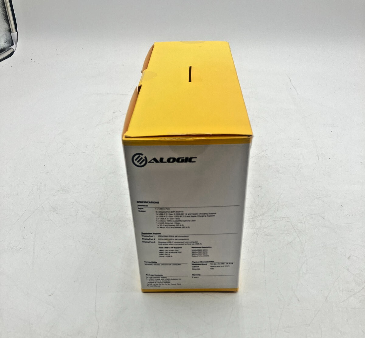 Factory sealed Alogic Universal Docking Station DX2 (Model DUPRDX2‑WW). Perfect for expanding your workstation – supports dual 4K displays, fast charging, and full peripheral connectivity. Minor tear on the factory seal at the back; contents are untouched and brand new.