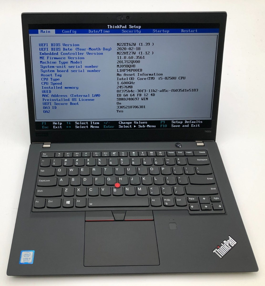 The Lenovo ThinkPad T480s delivers dependable performance and professional durability with an Intel Core i5 processor, 24 GB of memory, and a 14-inch Full HD display.