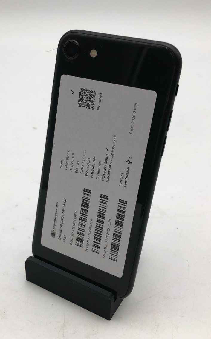 Apple iPhone SE (2nd Gen) 64GB Black AT&T Smartphone Tested