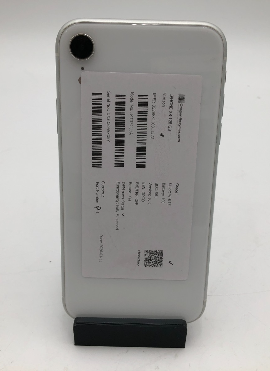 - Includes: Apple iPhone XR 128GB White Phone Only