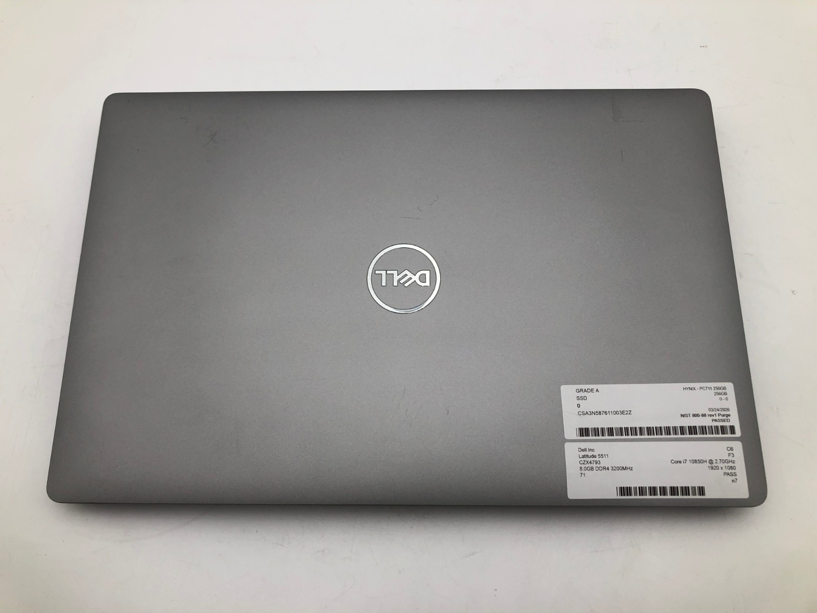 - Storage: 256GB M.2 NVMe SSD (The storage device has been tested and securely wiped using the NIST 800-88 Rev. 1 and NAID standards.)