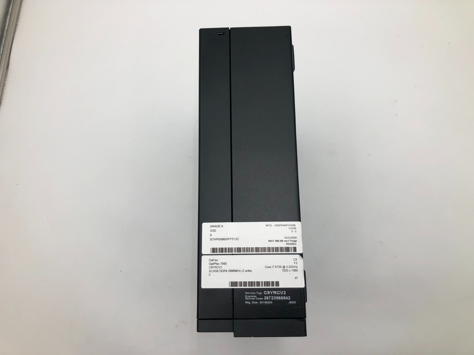 - Storage Device: 512GB M.2 NVMe SSD – securely wiped using NIST 800-88 Rev.1 and NAID standards