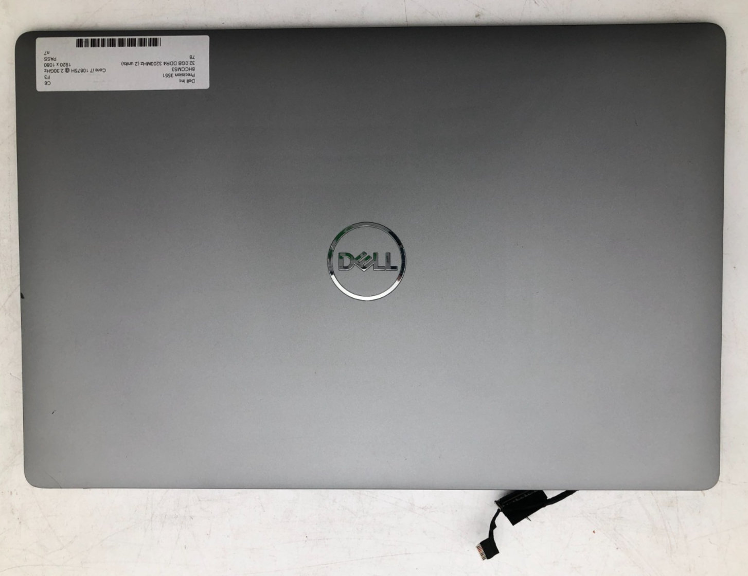 This listing is for a used Dell HXMYH 15.6″ screen complete with its full lid assembly, removed from a Dell Precision 3551. Included are the LCD panel, lid shell/back cover, front bezel, hinge brackets, and all mounting screws. The lid assembly is rated C3F3 per the R2V3 REC, indicating it has been tested with key functions working and is in fair cosmetic condition.