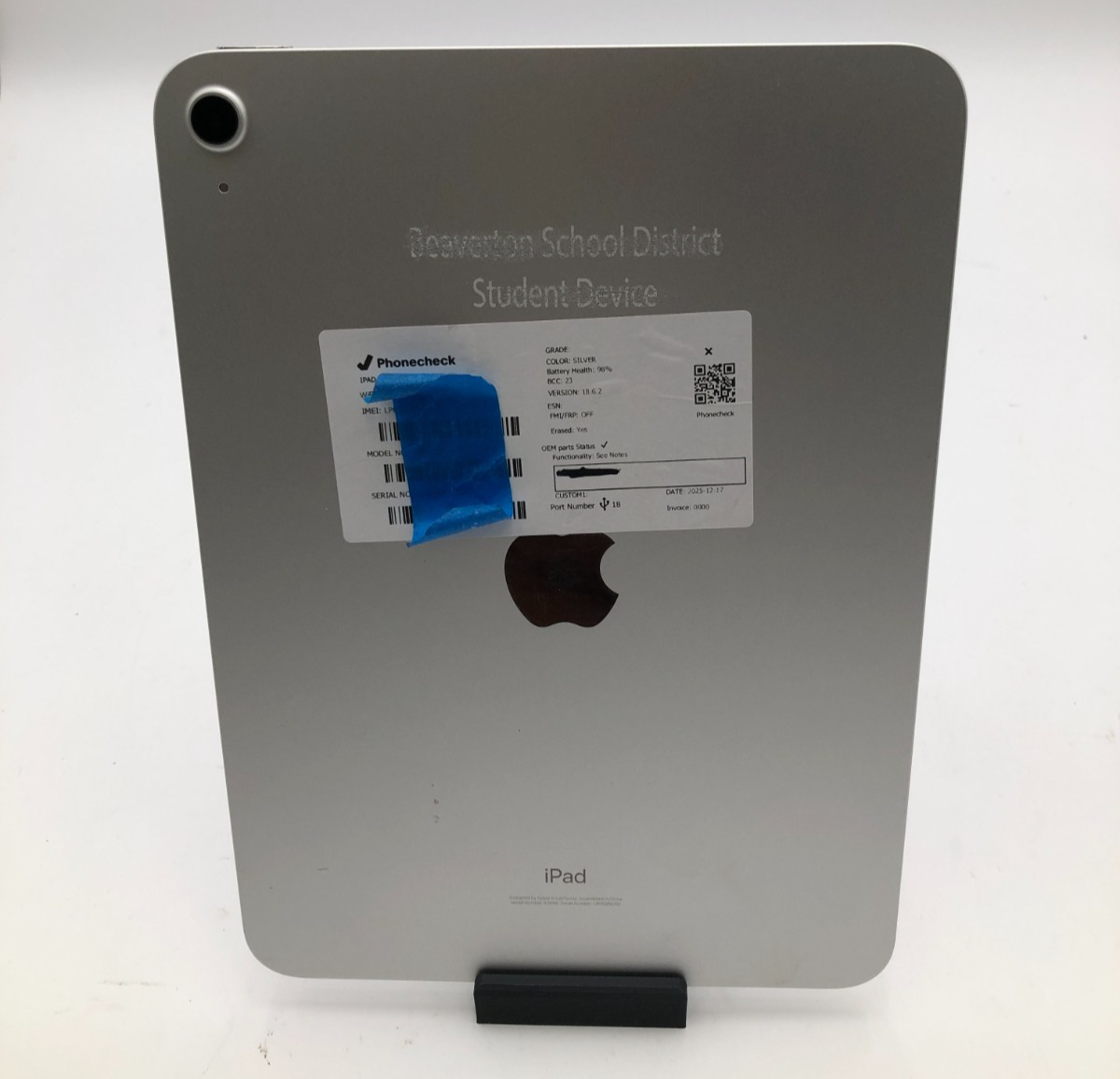 This Apple iPad 10.9-inch (10th Generation) Wi‑Fi model offers exceptional value with its modern design, 64GB storage, and strong battery performance at 98%. This unit was tested using Phonecheck diagnostics and securely wiped per US DOD 5220.22‑M standards. It is verified unlocked with no MDM locks and no repair history found. A fresh copy of the most recent iOS supported has been installed. We cannot install custom OS versions on request.
