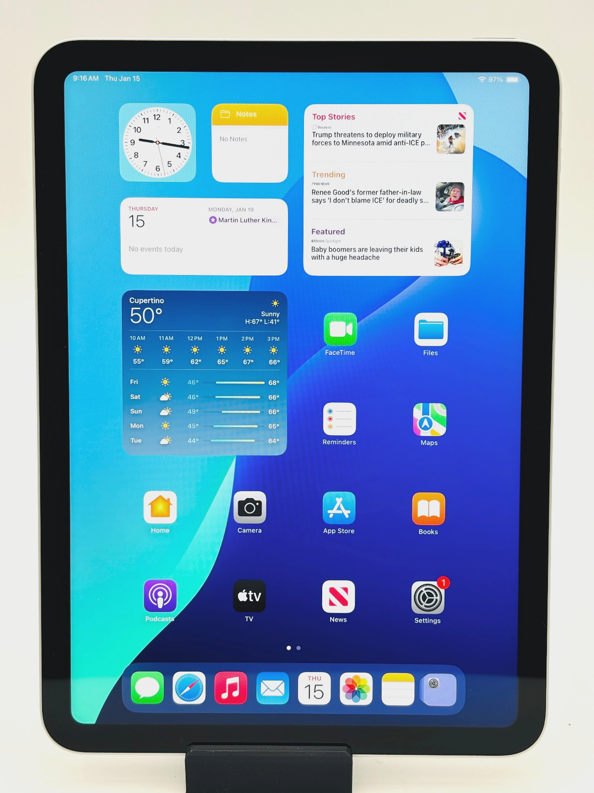 This Apple iPad 10.9″ 10th Generation tablet offers a perfect balance of performance and portability. With 64GB of internal storage, a vibrant display, and a sleek silver finish, it’s ideal for browsing, streaming, and productivity. This unit has been professionally tested, with all key functions confirmed to be working. The fingerprint sensor is non-functional due to surface damage but still operates as a power/sleep button. Device has been wiped per US DOD 5220.22-M (NIST-800-88) standards, and no Apple ID or MDM lock is present. No charger is included.