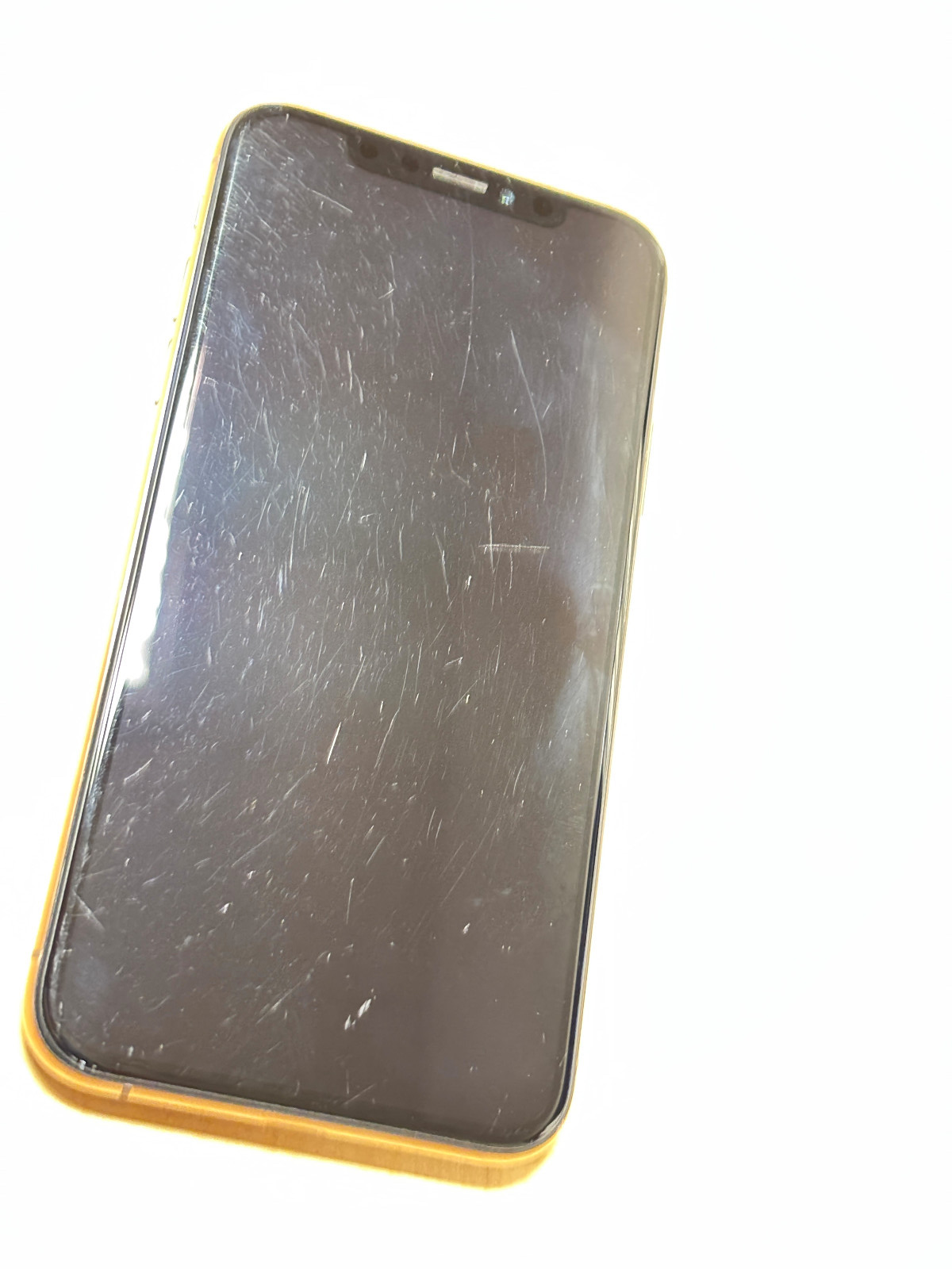 The phone does have visible scratches on the display, but it is otherwise structurally intact. All internal components are verified as genuine Apple OEM parts, including the battery, cameras, logic board, and display panel.
