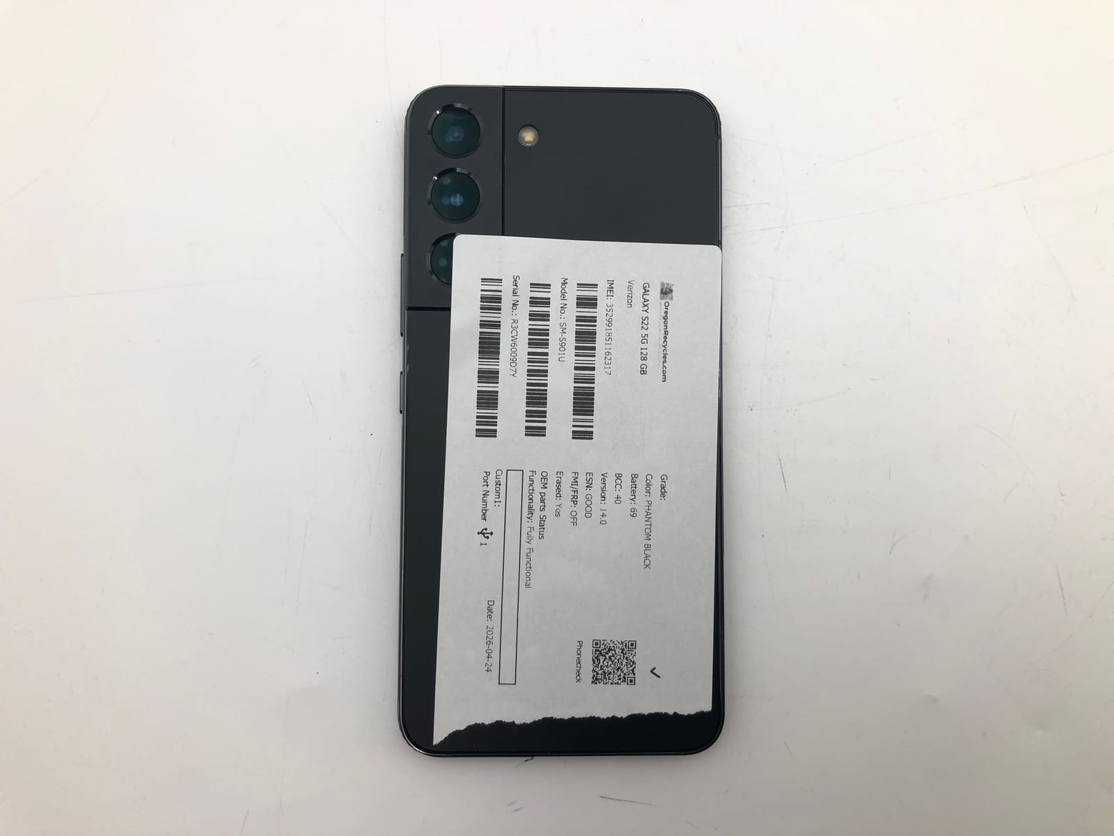 This Galaxy S22 5G system is equipped with 128GB of storage and runs Android 14.0. Fully tested by trained technicians; passes and noted observations are called out in detail below.