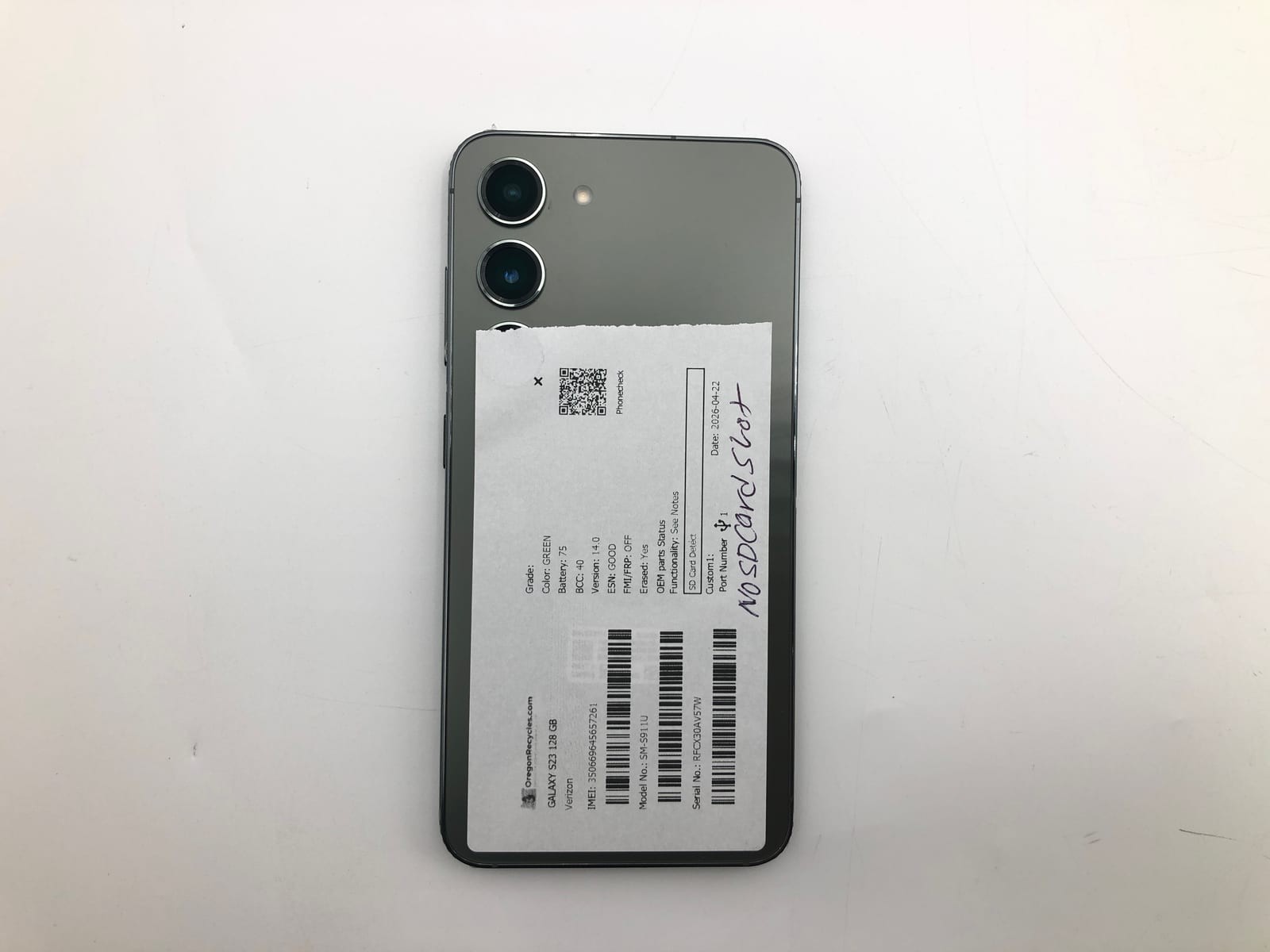 This Galaxy S23 system is equipped with 128GB of storage and runs Android 14.0. Fully tested by trained technicians; passes and noted observations are called out in detail below.