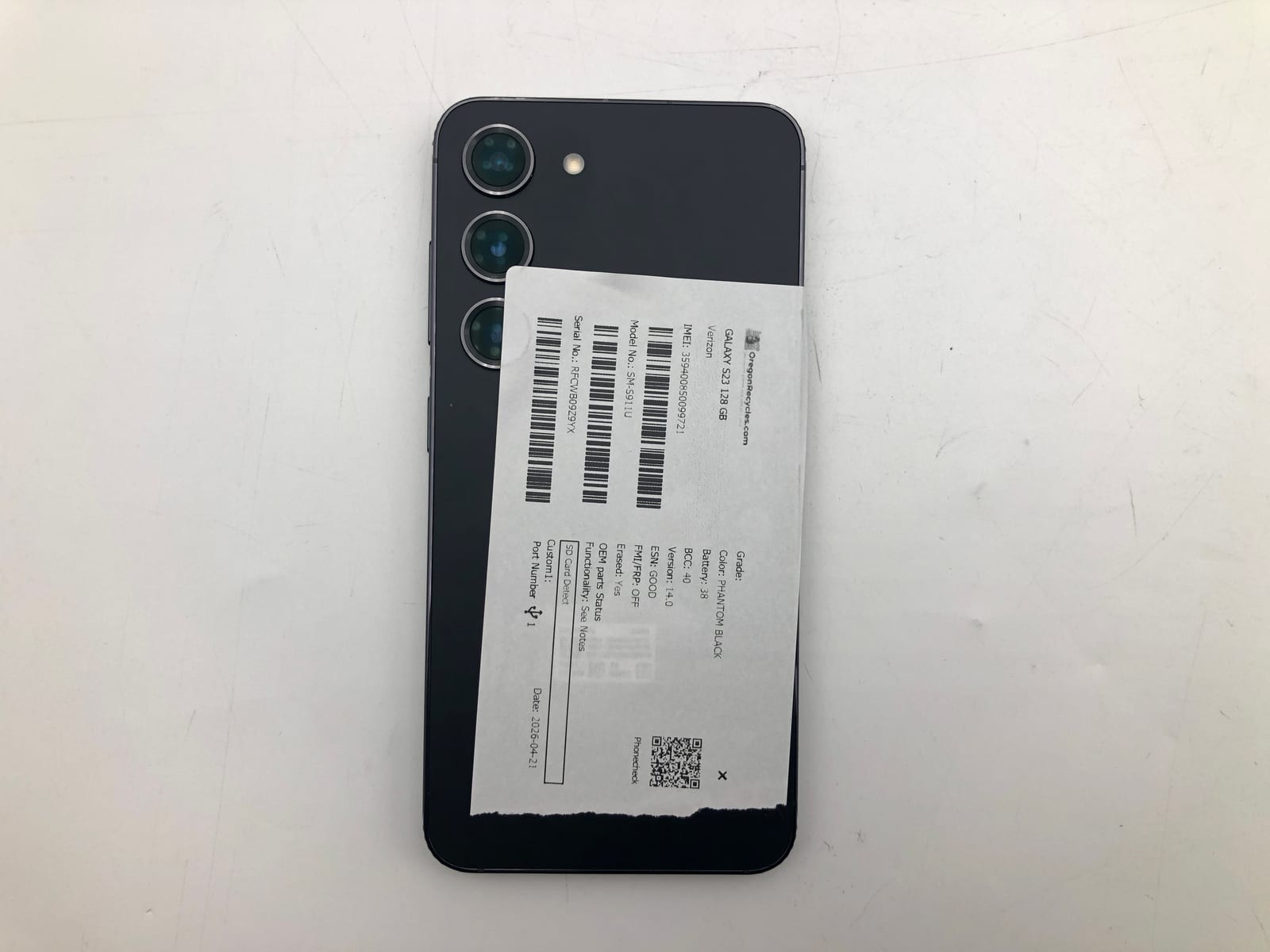 This Galaxy S23 system is equipped with 128GB of storage and runs Android 14.0. Fully tested by trained technicians; passes and noted observations are called out in detail below.