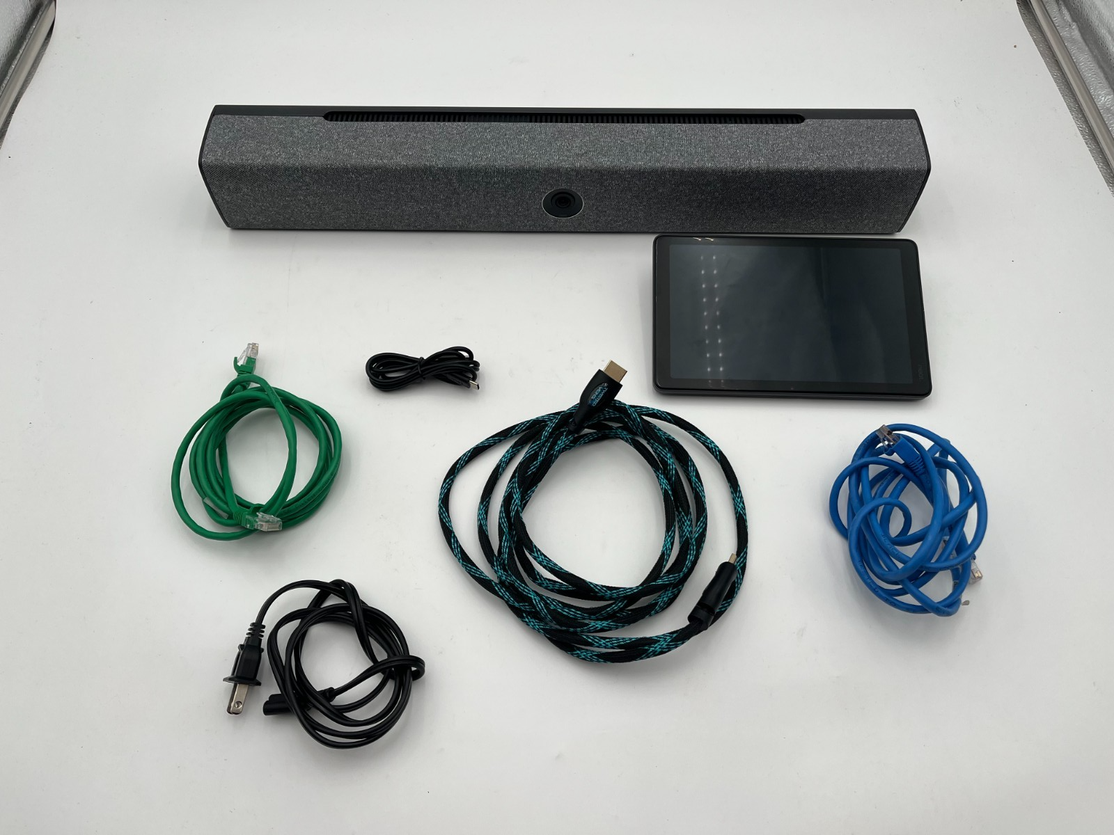 This is a tested Neat Bar B1 video conferencing bar bundled with the Neat Pad controller. Designed for seamless integration into modern meeting rooms, this system supports Zoom Rooms and Microsoft Teams environments. With a 12 MP wide-angle camera, built-in mic array, speaker system, and a POE-powered touchscreen controller, this combo offers an all-in-one video collaboration experience. This set is ideal for small to medium rooms, offering excellent audio and video quality.Tested and confirmed to meet the R2V3 standard of F3: Key Functions Working and C5: Used Very Good cosmetic condition. This unit has been fully sanitized and reset, with all primary functions verified and minor wear only.