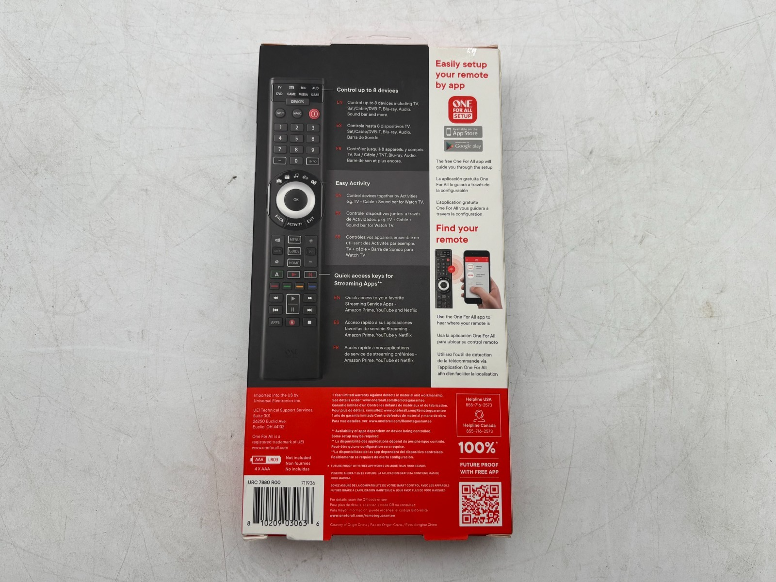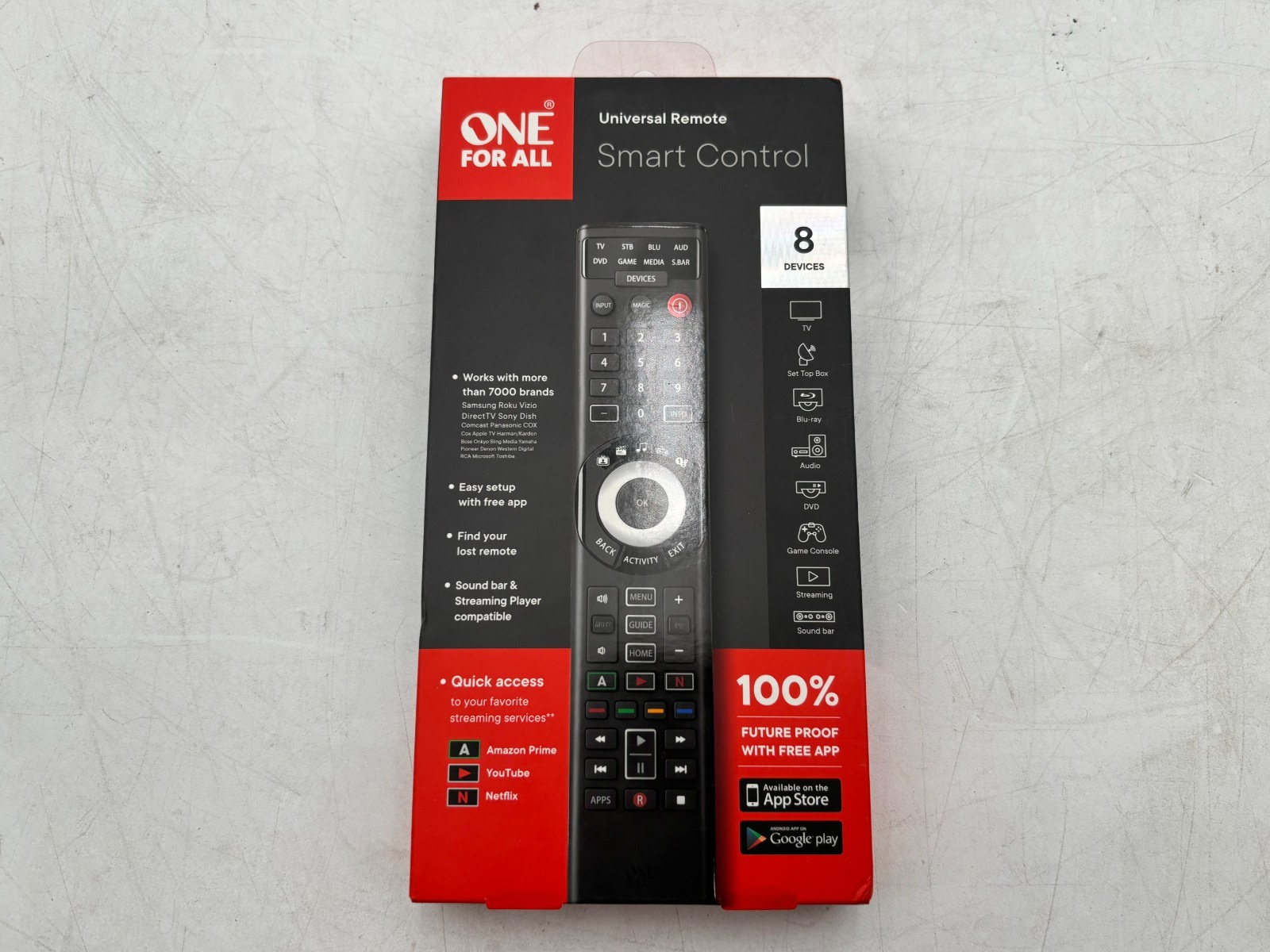 Includes: ONEforALL Smart Control remote, original box and packaging, manual (factory sealed) - Does not Include: Programming service or smartphone required for app setup