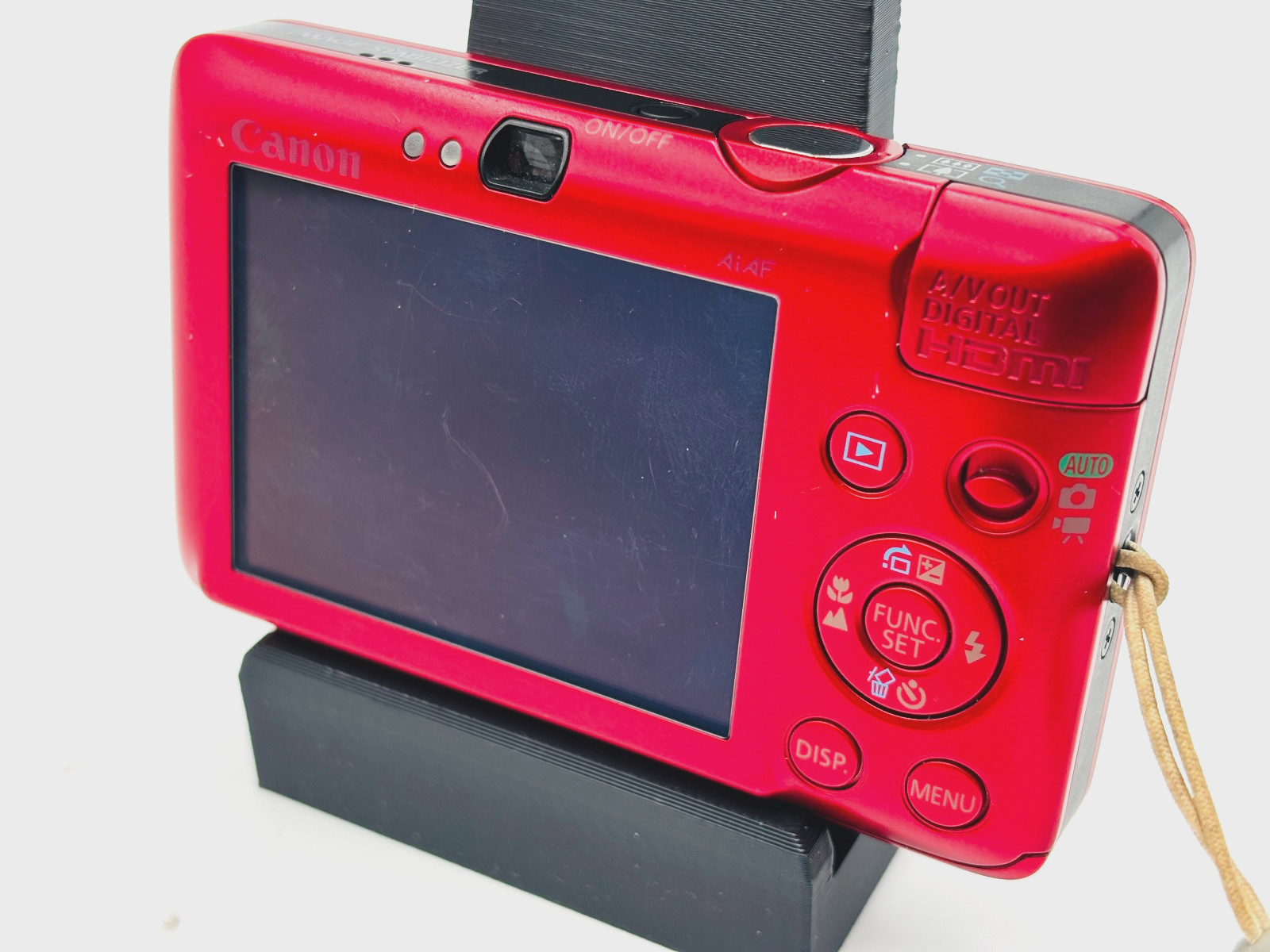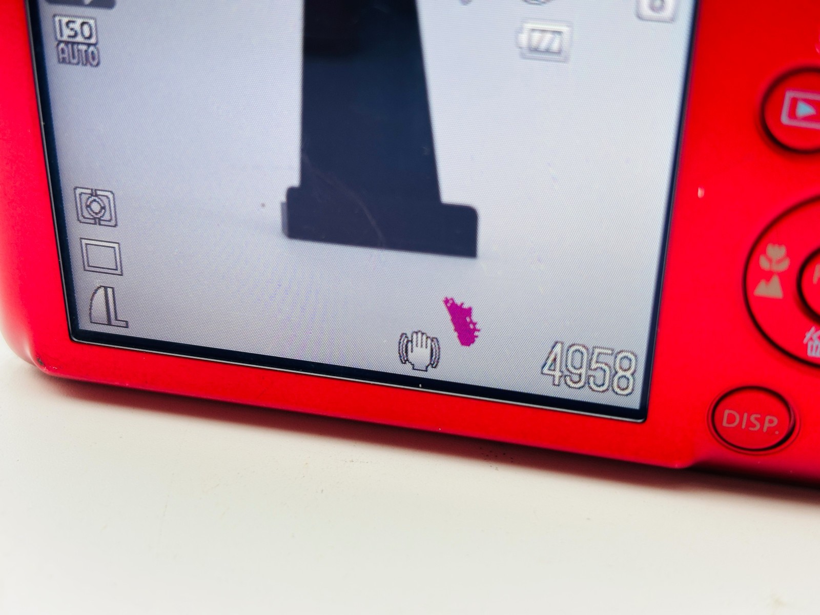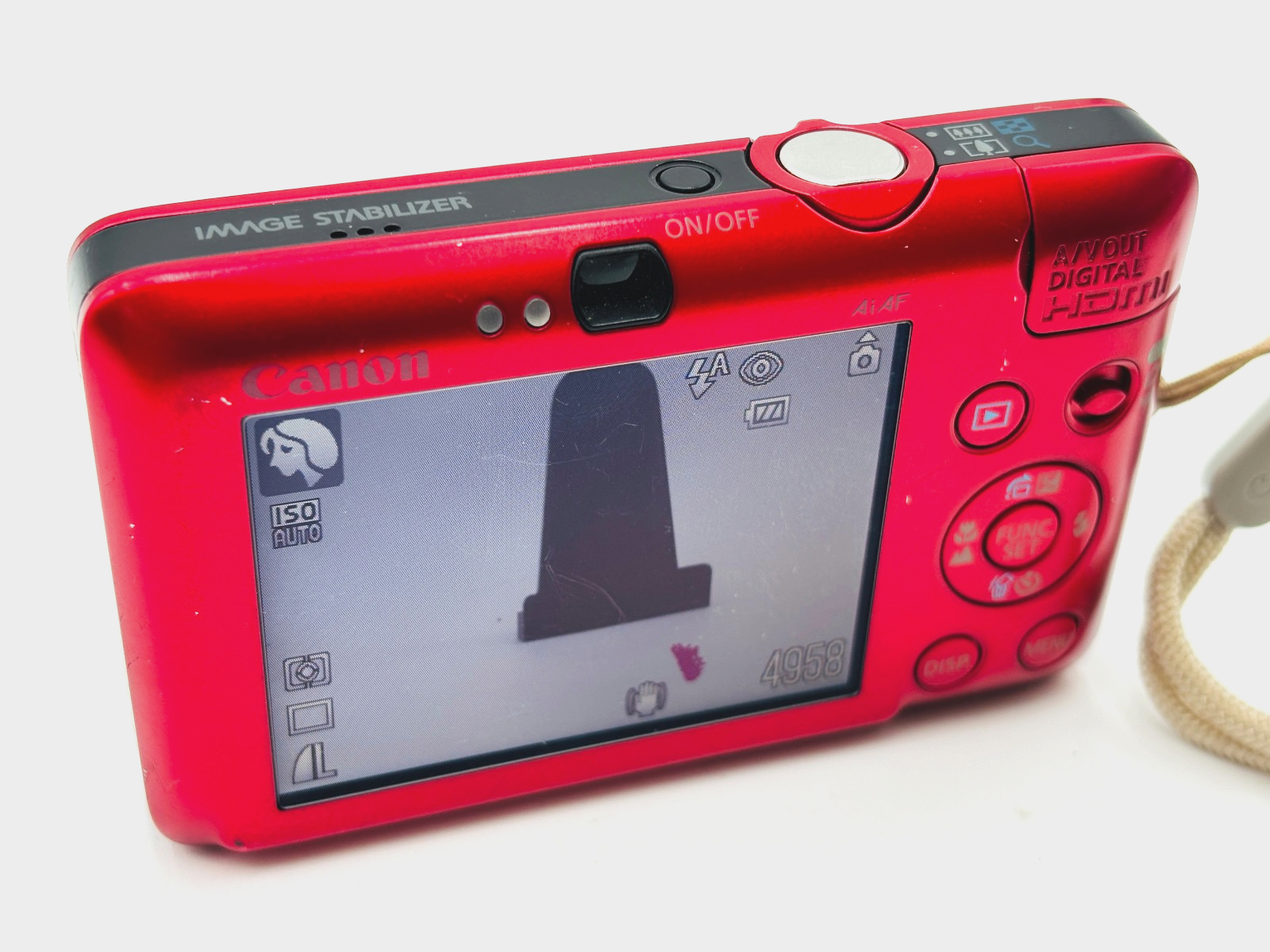 This Canon PowerShot SD780 IS in red is a stylish and ultra-compact digital camera perfect for casual photography or as a backup travel cam. With a 12.1MP CCD sensor and 3x optical zoom, it delivers sharp images and HD video. The built-in flash and multiple smart detection modes help capture great shots in any condition. Despite some cosmetic wear — including a dent around the lens housing, dust in the viewfinder, and a small dead spot on the LCD — the camera has been fully tested. It functions properly, taking both photos and videos with stable image storage on the included 16GB SD card. All controls are responsive, and the battery retains charge well even after days of standby. A solid pick for someone seeking a functional point-and-shoot camera on a budget.