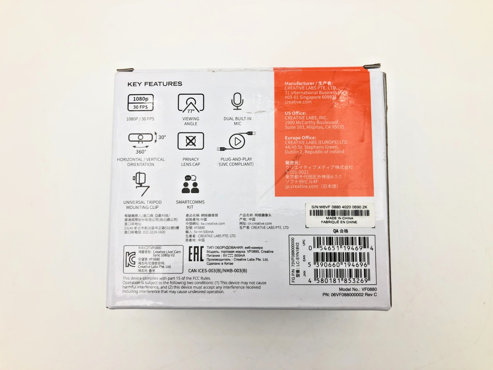 Creative Live! Cam Sync 1080p V2 Webcam (attached USB cable), Retail Box -