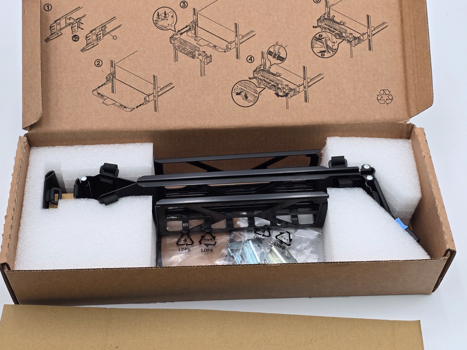Left & right sliding rails, mounting arms, full hardware pack, OEM protective foam, original Dell box