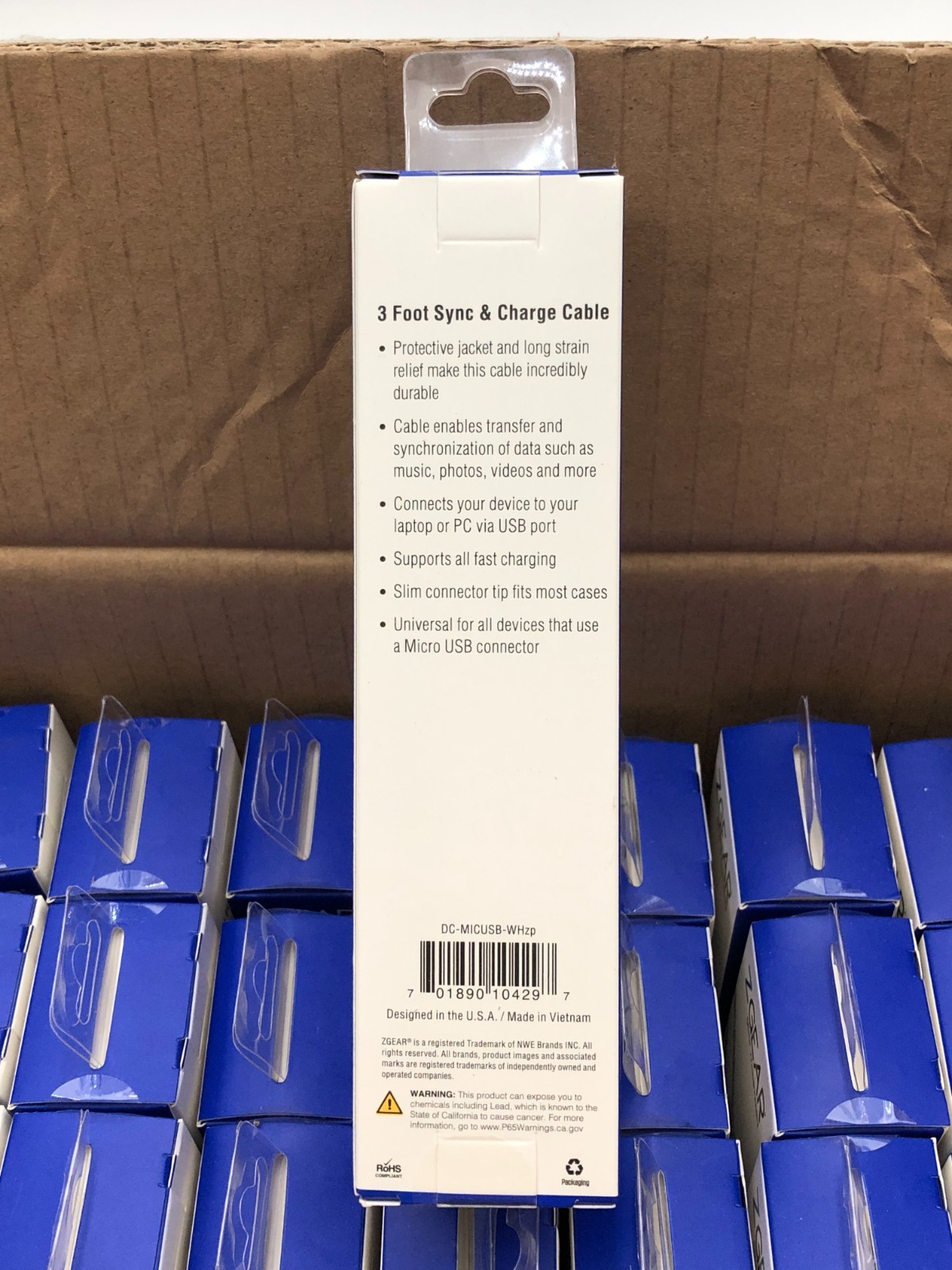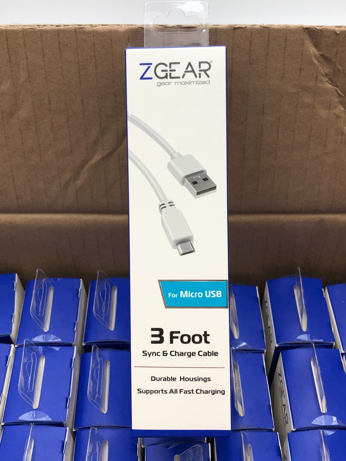 Lot (36) – ZGear 3 Foot Micro USB Sync & Charge Cable DC-MICUSB-WHZP – New Sealed