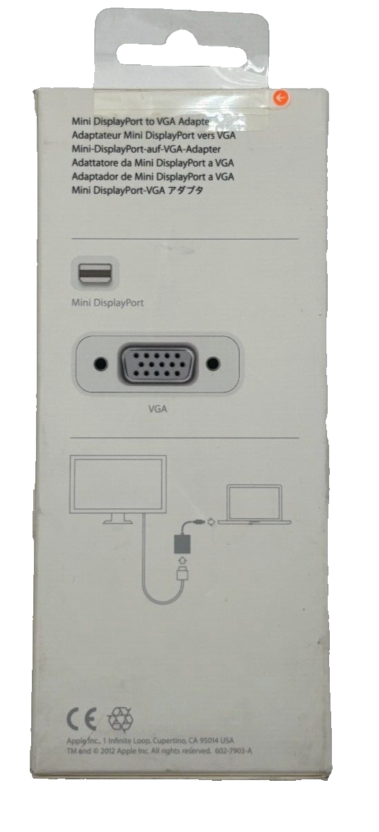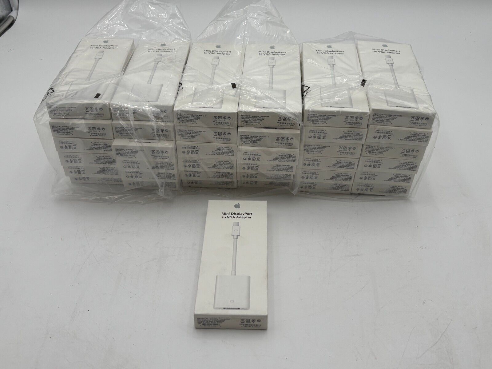 We are offering a lot of 37 brand-new, factory-sealed Apple Mini DisplayPort to VGA Adapters. These adapters enable you to connect your Mac with a Mini DisplayPort, Thunderbolt port, or Thunderbolt 2 port to a display that uses a VGA cable, supporting display resolutions up to 1920 x 1200.